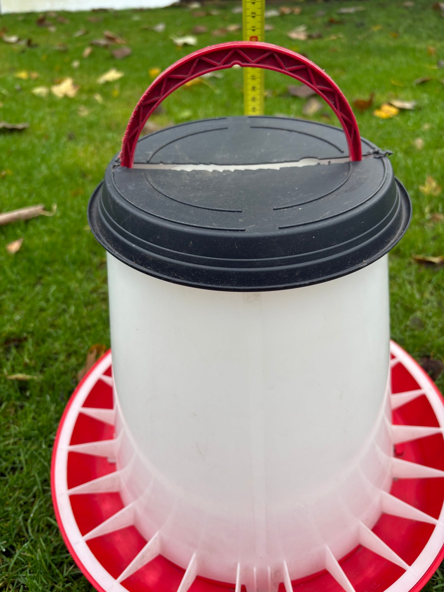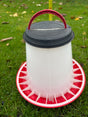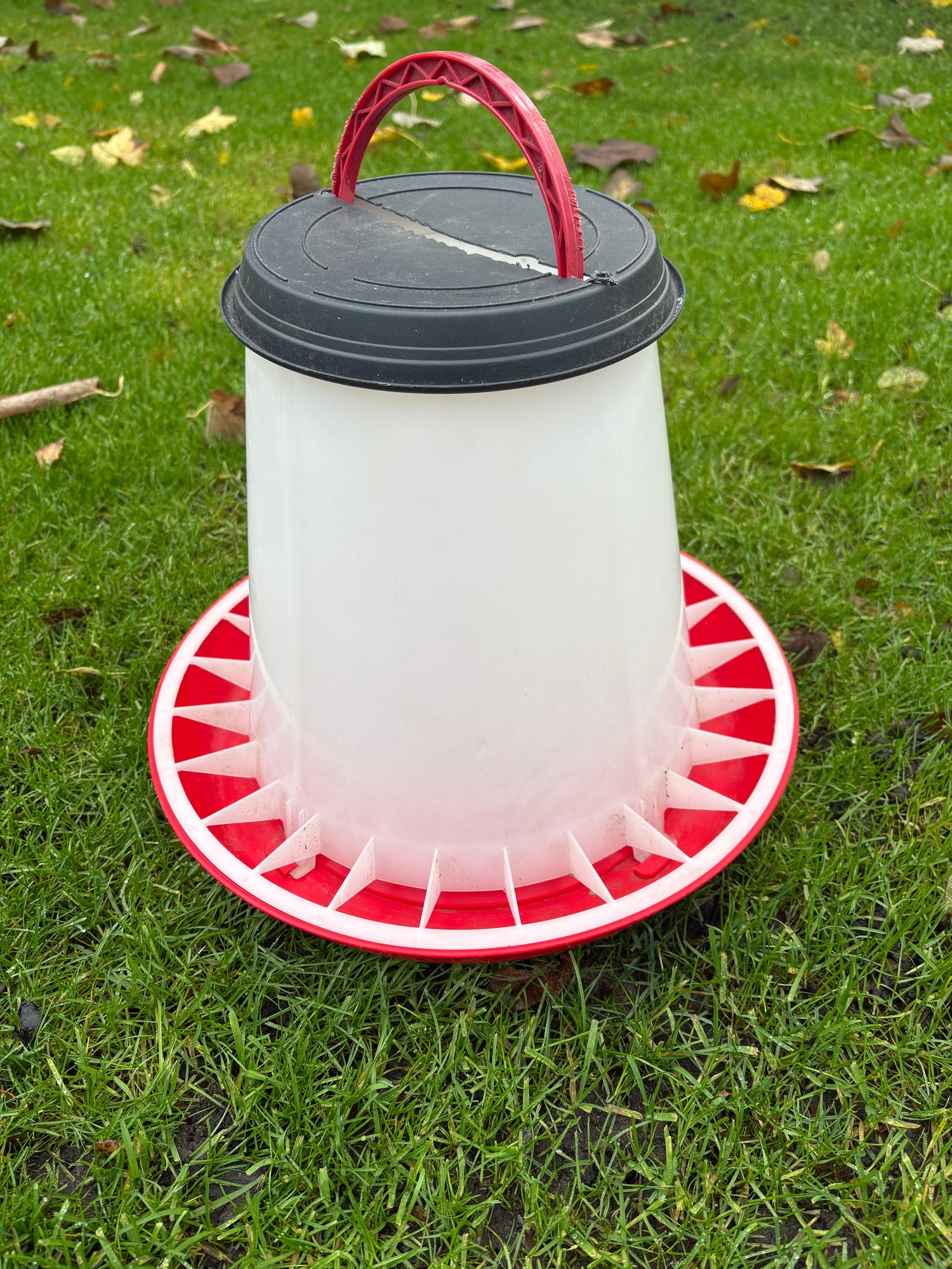 Deze grote gebruikte voerbak is ideaal voor kippenhouders die een ruime, stevige en praktische voederoplossing nodig hebben. Met een hoogte van 35 cm en een diameter van 41 cm biedt deze bak meer dan genoeg capaciteit voor grotere koppels kippen. De originele deksel ontbreekt, maar er is een passend vervangend deksel opgemaakt zodat de bak alsnog goed te gebruiken is. Dankzij het robuuste ontwerp krijgt deze voerbak een mooi tweede leven en blijft hij perfect functioneren in ieder kippenhok.