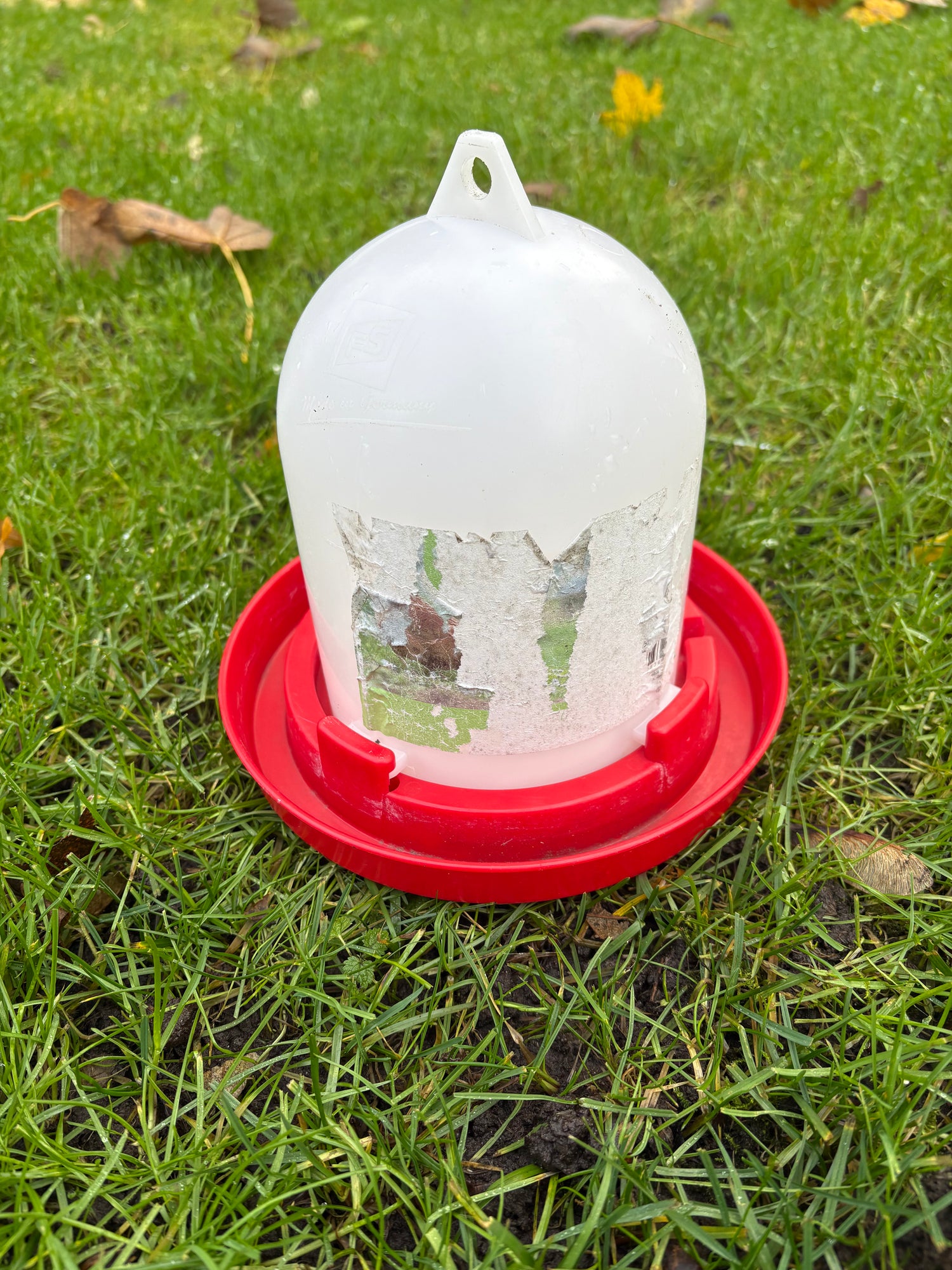 Deze gebruikte waterbak van 1,5 liter is een praktische keuze voor kleinere groepen kippen of als extra drinkpunt in het hok. Met een hoogte van 20 cm en een diameter van 19 cm is hij compact, maar biedt hij toch voldoende inhoud voor dagelijks gebruik. De rode onderkant zorgt voor goede zichtbaarheid en maakt de bak makkelijk te vinden tussen andere hokaccessoires. De oorspronkelijke sticker zit er nog deels op. Een stevige waterbak die perfect een tweede leven krijgt in jouw kippenhok.